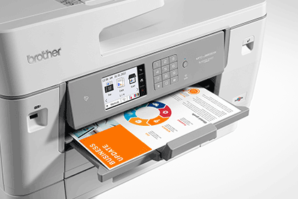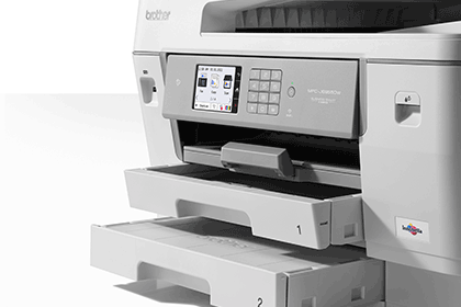 Brother MFC-J6955DW ir augstas veiktspējas krāsu tintes daudzfunkciju printeris. Drukas ātrums līdz 30 attēliem minūtē, automātiska divpusēja A3 drukāšana, skenēšana, kopēšana un faksa sūtīšana nodrošina efektīvu liela apjoma dokumentu apstrādi. 8,8 cm krāsu skārienekrāns, NFC atbalsts drošai autentifikācijai un mobilajai drukāšanai, kā arī divas 250 lokšņu papīra padeves nodrošina ērtu un netraucētu ikdienas darbu.