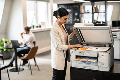 MFC-J6955DW ir izstrādāts, ņemot vērā uzņēmumu vajadzības, kuriem svarīga ir ne tikai produktivitāte, bet arī drošība un vienkārša pārvaldība. Integrētā tuvā darbības lauka komunikācija (NFC) nodrošina drošu autentifikāciju un ērtu mobilo drukāšanu. Intuitīva lietotāja saskarne ļauj ātri iestatīt skenēšanas maršrutus un nosūtīt dokumentus tieši uz visbiežāk izmantotajām biroja lietojumprogrammām. 8,8 cm krāsu skārienekrāns ar lappušu skaitītāja funkciju ļauj uzraudzīt tintes patēriņu un efektīvāk plānot ekspluatācijas izmaksas.