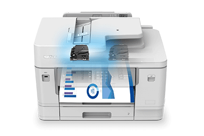 MFC-J6959DW izmanto uzlabotu MAXIDRIVE drukāšanas tehnoloģiju, kas nodrošina augstu drukas ātrumu, precizitāti un izturību. Tintes pilieni veidojas mikroskopiskā līmenī un vienmērīgi sadalīti pa tūkstošiem atsevišķu kanālu, kā rezultātā tiek nodrošināta nemainīga, profesionāla drukas kvalitāte. Šī tehnoloģija ļauj droši drukāt gan ikdienas biroja dokumentus, gan liela formāta grafiskos darbus.