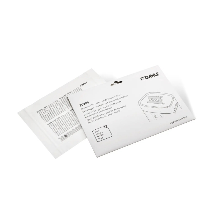 Šīs ir lietošanai gatavās DAHLE eļļas loksnes dokumentu smalcinātāja apkopei, kas palīdz nodrošināt griešanas mehānisma netraucētu darbību un samazina iestrēgšanas risku. Tas ir vienkāršs un tīrs veids, kā regulāri uzturēt ierīci. DAHLE ir uzticams vācu ražotājs, kas piedāvā profesionālus dokumentu aizsardzības un iznīcināšanas risinājumus.